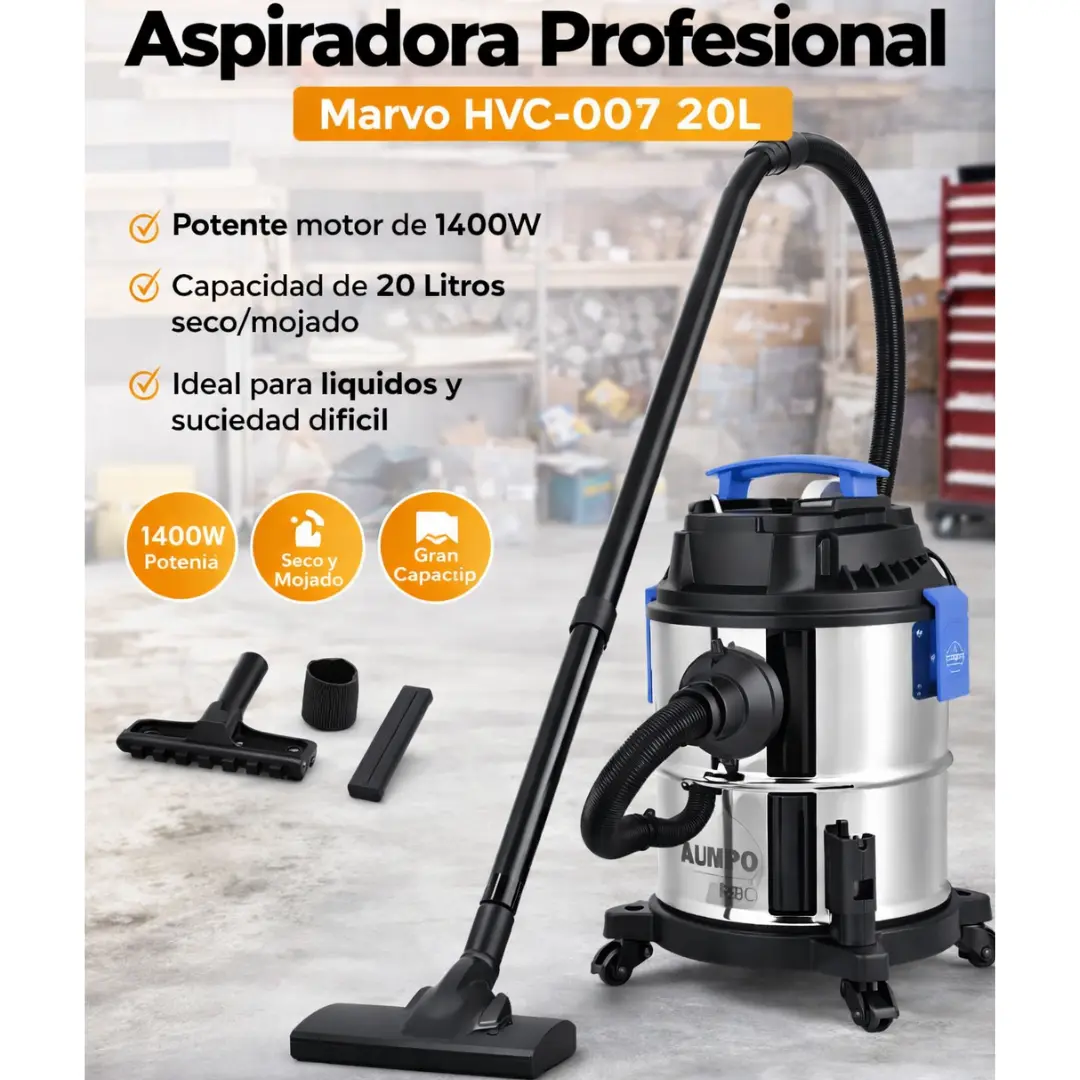La Aspiradora Profesional Marvo HVC-007 está diseñada para eliminar polvo, suciedad y líquidos con una potencia impresionante, dejando cada espacio impecable en minutos.
