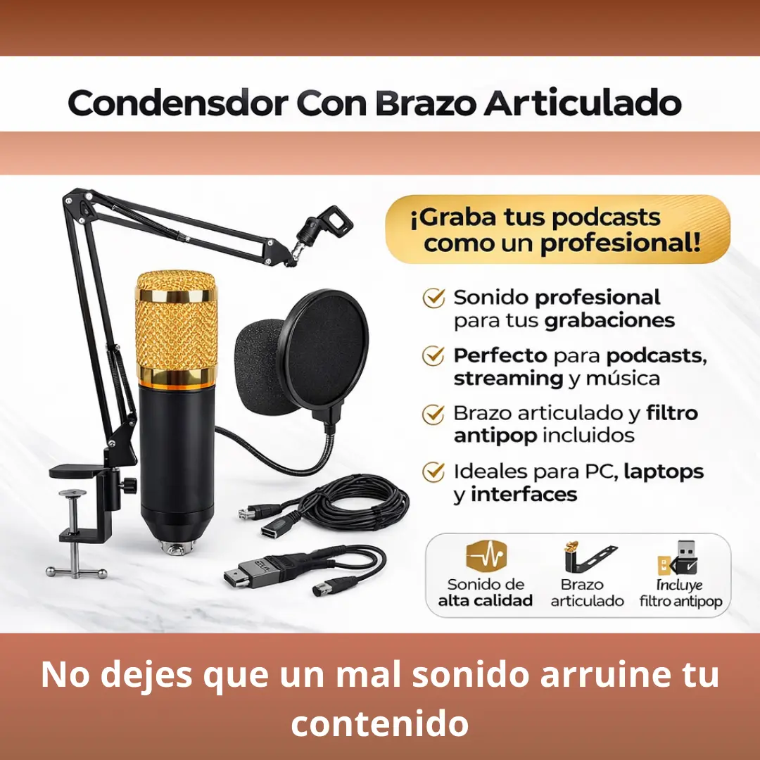 ✔️ Brazo articulado ajustable Posicioná el micrófono cómodamente en cualquier escritorio.
